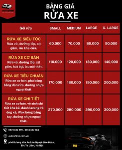 Bảng giá Rửa xe ô tô tự động tại Autoshine chúng tôi đưa ra nhằm mang đến cho cộng đồng dịch vụ chất lượng cao với giá hợp lý nhất. Với sự kết hợp hoàn hảo giữa giàn rửa xe tự động và kỹ thuật thủ công, Autoshine mang đến các gói rửa xe ô tô đáp ứng tiêu chí: